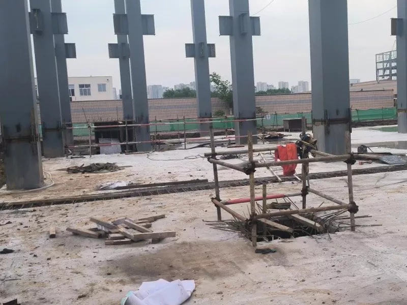 3.On-instalazioa: osagaiak fabrikan aurrefabrikatuta dauden bitartean, eraikuntza-taldeak aingura-torlojuak aurretiaz lurperatuko ditu eraikuntza gunean, zimenduen lurperatzea osatzeko. Azkenik, goi-mailako ospitale metalezko aurrefabrikatutako eraikinaren muntaia egiten da.