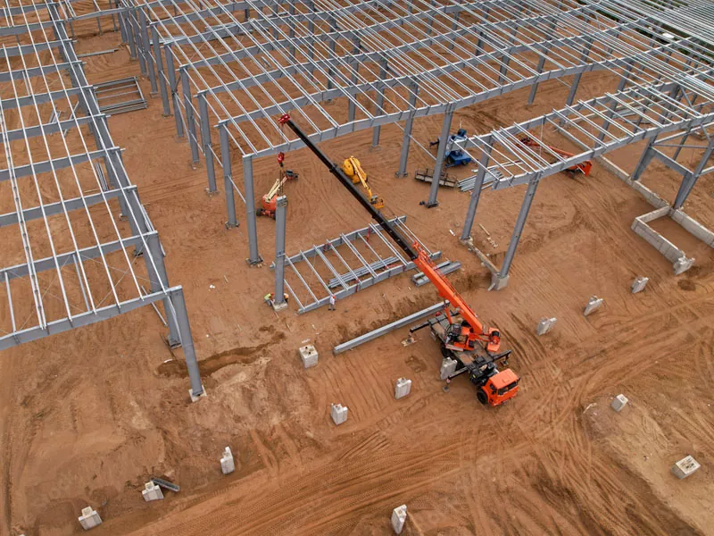 Altzairuzko markoa amaitutakoan, teilatu sistema instalatuta dago. Horrek normalean metalezko panel isolatuak edo geruza bakarreko mintz materialak dakartza, iraunkortasuna eta eraginkortasun termikoa eskainiz. Kanpoko hormak, diseinuan sartuta, metalezko panelak, adreiluak edo bestelako estalkiak erabiliz instalatzen dira. Fase honek biltegiaren erakargarritasun estetikoa hobetzen du eguraldiaren erresistentzia eta energia eraginkortasuna bermatuz.